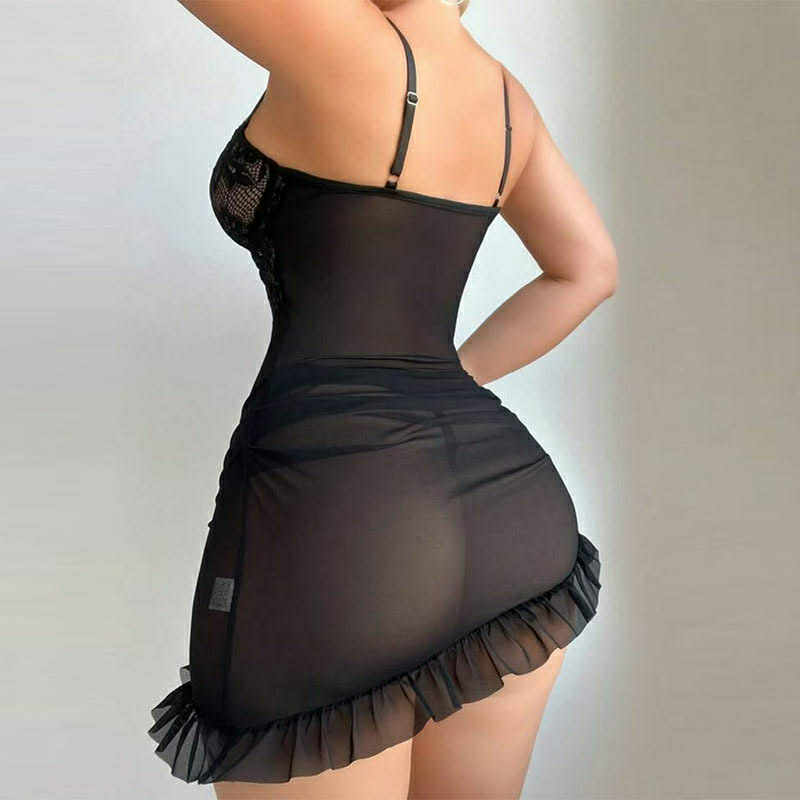 Laissez-vous séduire par Nuit Élégante, une nuisette noire au charme envoûtant.