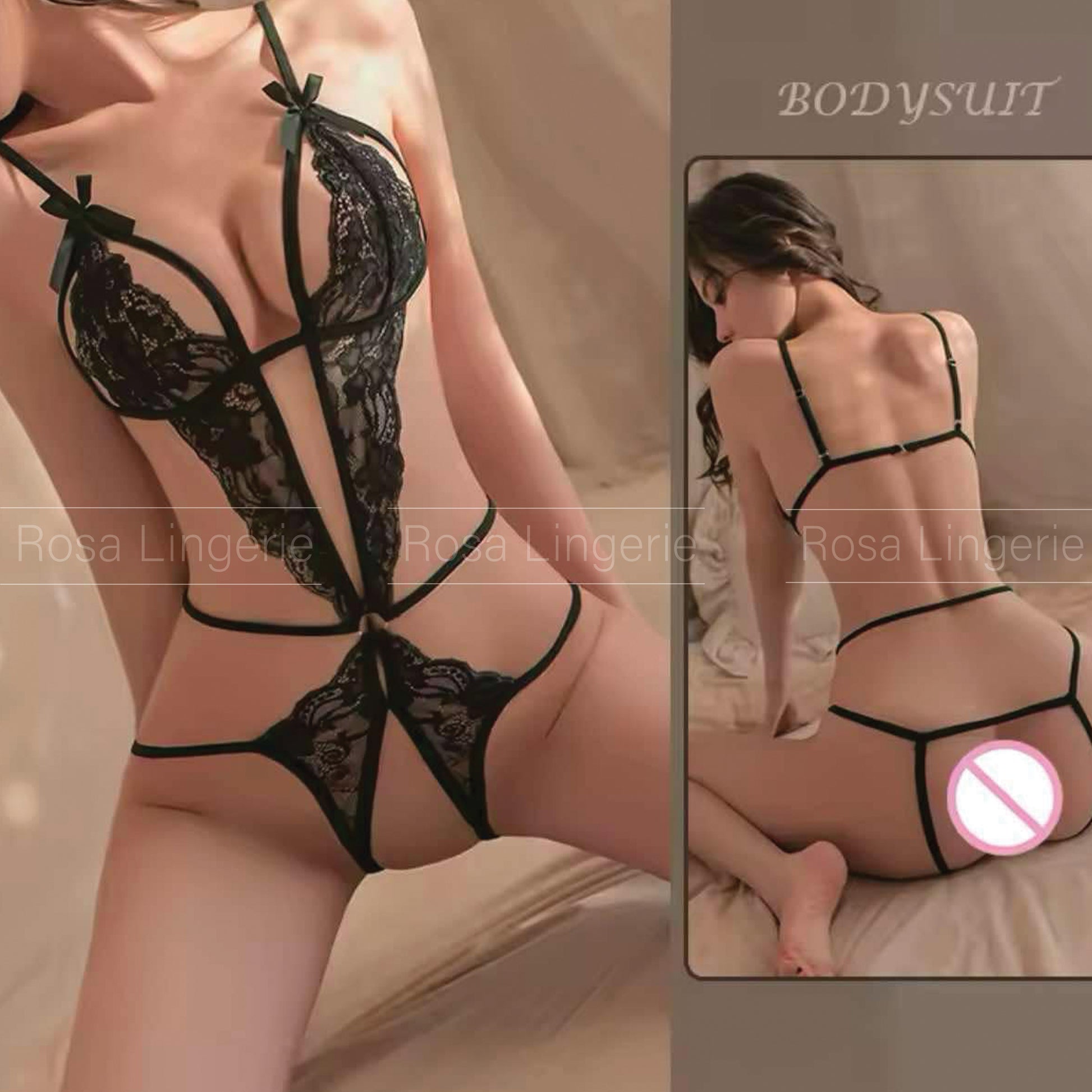trikini en dentelle avec une coupe originale et sexy qui se termine en string à doubles élastiques sur les hanches et avec un magnifique dos nu